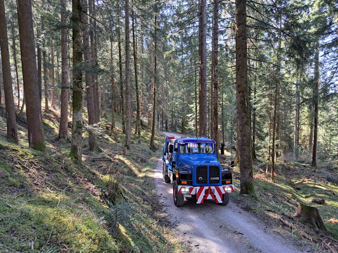 Die Liechti AG verfolgt grundsätzlich das Ziel möglichst alle Transporte mit Fahrzeugen der modernsten Abgasklasse durchzuführen. Unser Modernen Fahrzeugpark nützt uns hierbei täglich. Dennoch ist es so dass die Strassen im Gantrischgebiet mit der Entwicklung in der Nutzfahrzeugbranche nicht mithalten. Es gibt immer noch viele Liegenschaften welche nicht für die heutige Generation von Fahrzeugen erschlossen sind. Daher haben wir dieses Spezialfahrzeug für eben diese Spezialeinsätze im Fuhrpark.